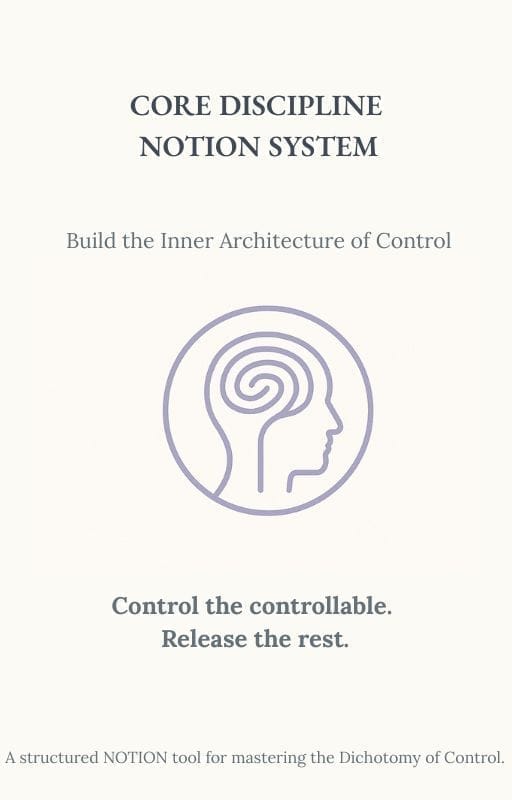 A practical Notion system (Templates + Methodology + Action Guide) that turns the Dichotomy of Control into daily habits: track triggers, reduce emotional noise, and build inner discipline step by step.