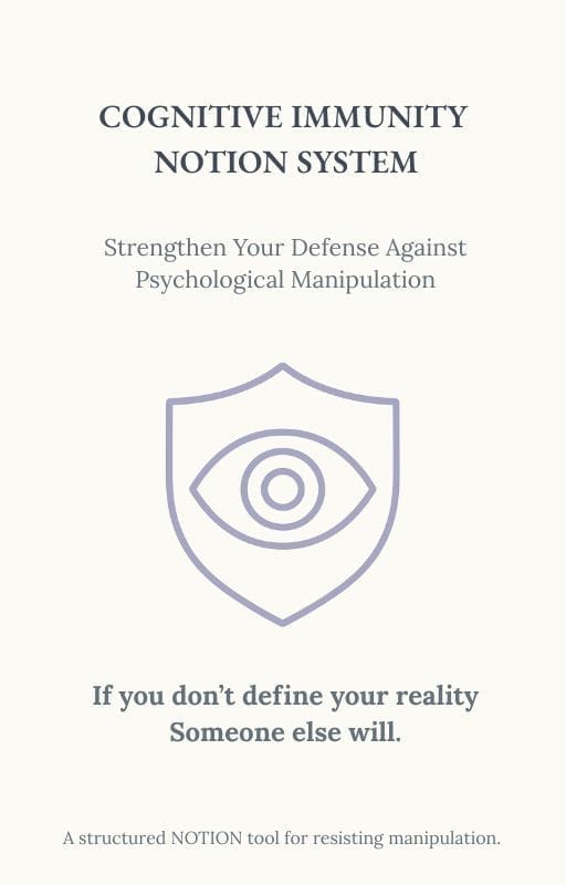 Track manipulation events. Analyze your reactions.Train your responses.Build immunity through daily detection and real-time awareness.This practical Notion system includes templates, methodology, action guide.