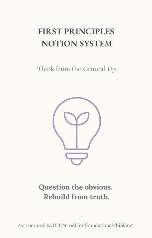 Break problems down. Strip away fake rules.Train deeper thinking through daily logs and structured analysis.Rebuild every decision.This practical Notion system includes templates, methodology, action guide.