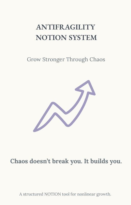 Track your stress, analyze your reactions, and train antifragile responses.Helps you extract growth from every chaotic event and build real resilience.This practical Notion system includes templates, methodology, action guide.