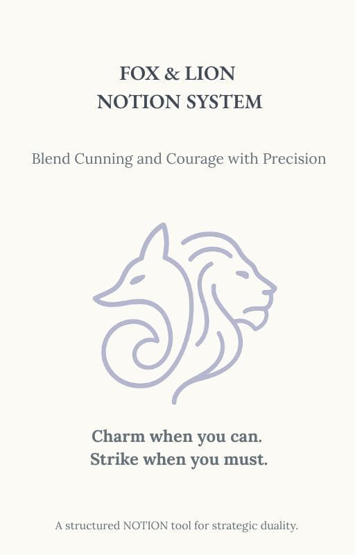 Track real situations, identify what each moment demands,and train your ability to switch between fox-mode and lion-mode with precision.This practical Notion system includes templates, methodology, action guide.