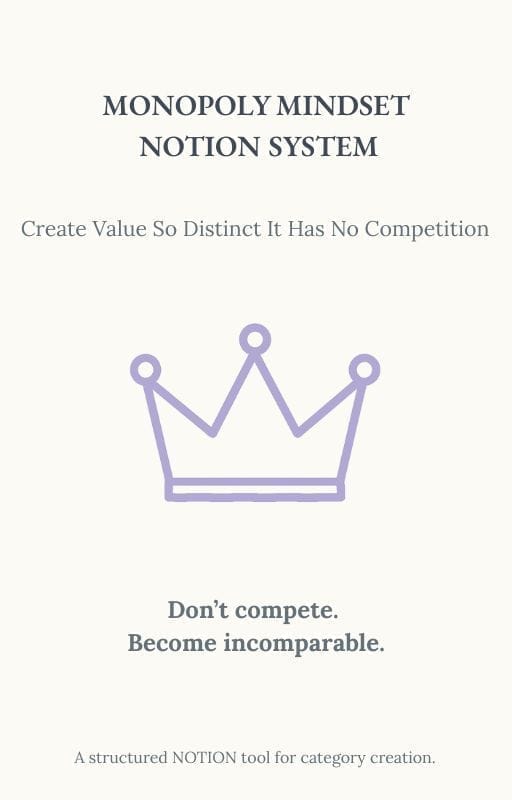 Track your ideas.Measure uniqueness.Break out of the competition trap by designing value no one can copy.This practical Notion system includes templates, methodology, action guide.